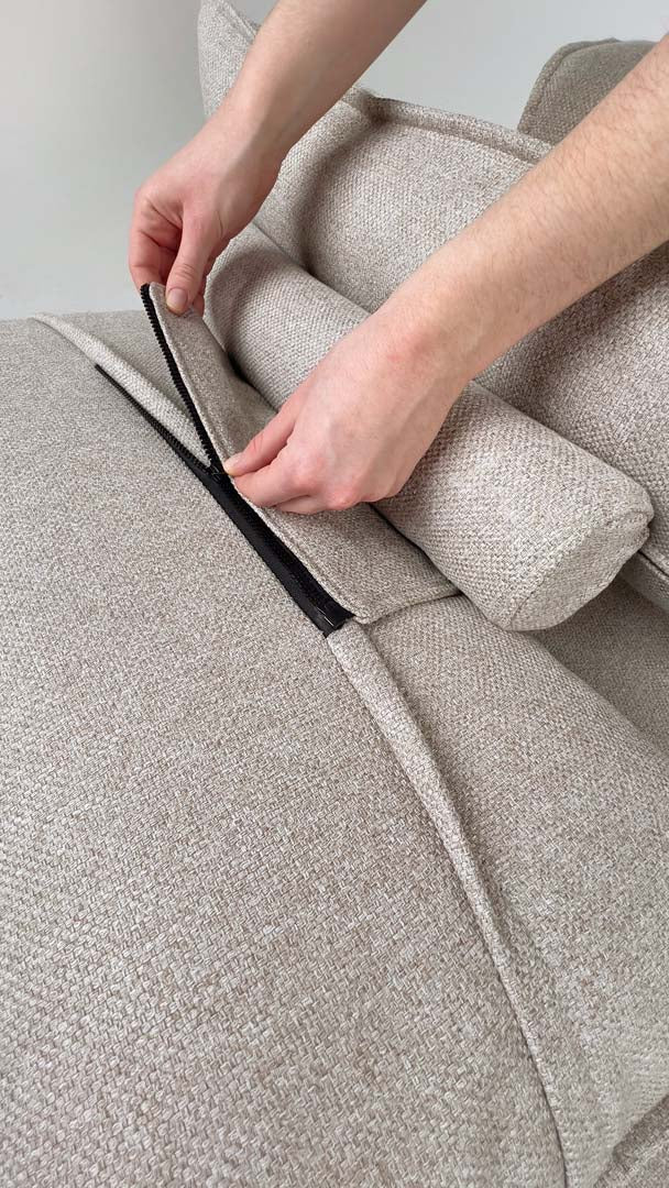 It depends on the type of stain. Light stains can be easily removed with a damp cloth, a little dishwashing liquid and circular movements. If not, simply remove the individual stained cover, wash it in the washing machine and reattach it once clean.